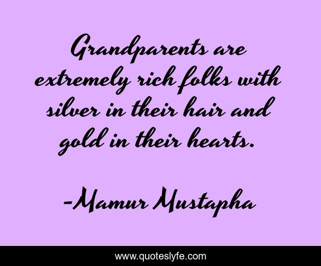 This page presents the quote "Grandparents are extremely rich folks with silver in their hair and gold in their hearts.". Author of this quote is Mamur Mustapha. This quote is about life, love, people, grandparents, understanding, patience, blessings, rich, joy,.