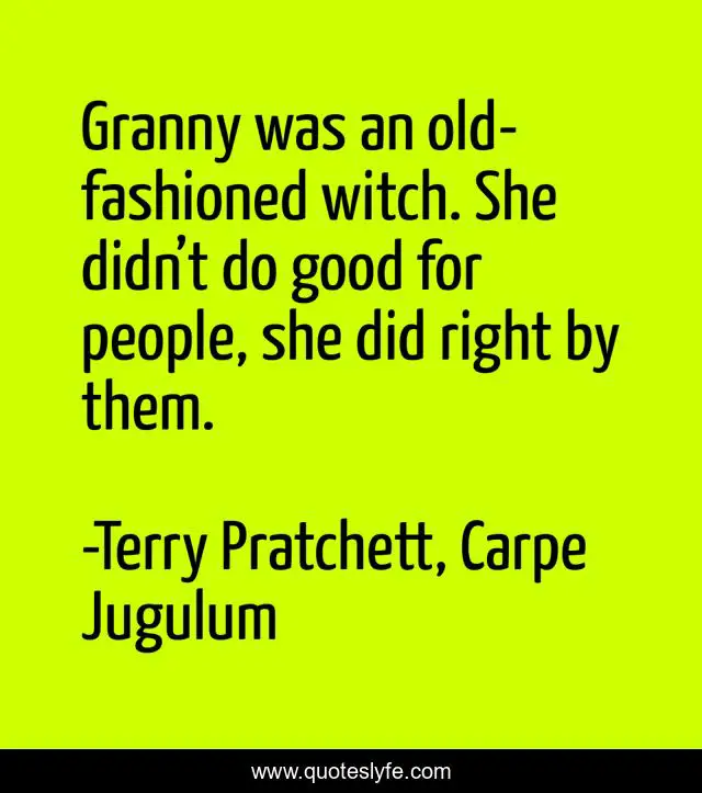 "Terry Pratchett, Carpe Jugulum Quotes." Quoteslyfe.com, 2025. Sat. 06 Dec. 2025. <https://www.quoteslyfe.com/quote/Granny-was-an-old-fashioned-witch-She-6794>.