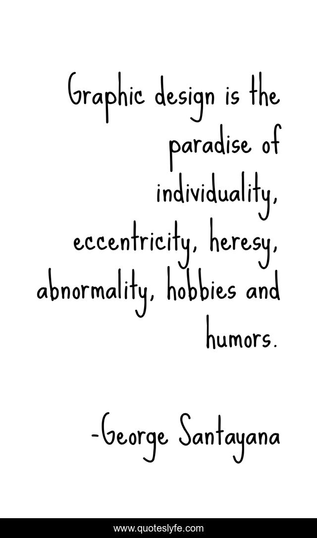 This page presents the quote "Graphic design is the paradise of individuality, eccentricity, heresy, abnormality, hobbies and humors.". Author of this quote is George Santayana. This quote is about individuality, paradise,.