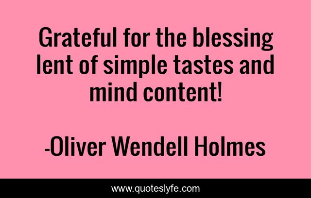 This page presents the quote "Grateful for the blessing lent of simple tastes and mind content!". Author of this quote is Oliver Wendell Holmes. .