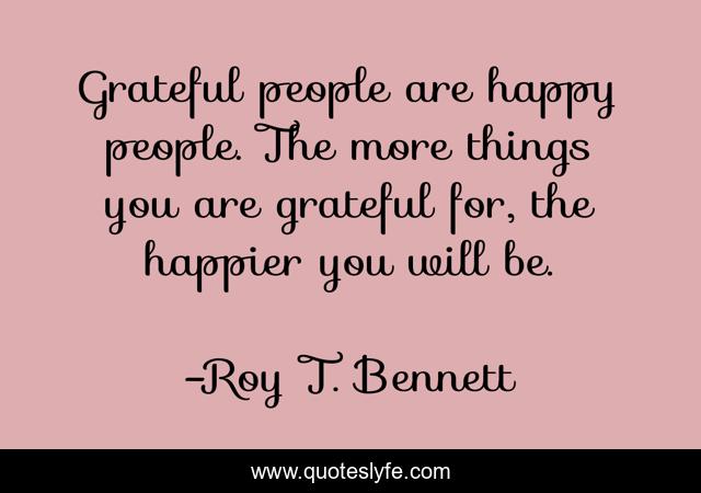 "Roy T. Bennett Quotes." Quoteslyfe.com, 2025. Mon. 08 Dec. 2025. <https://www.quoteslyfe.com/quote/Grateful-people-are-happy-people-The-more-14487>.