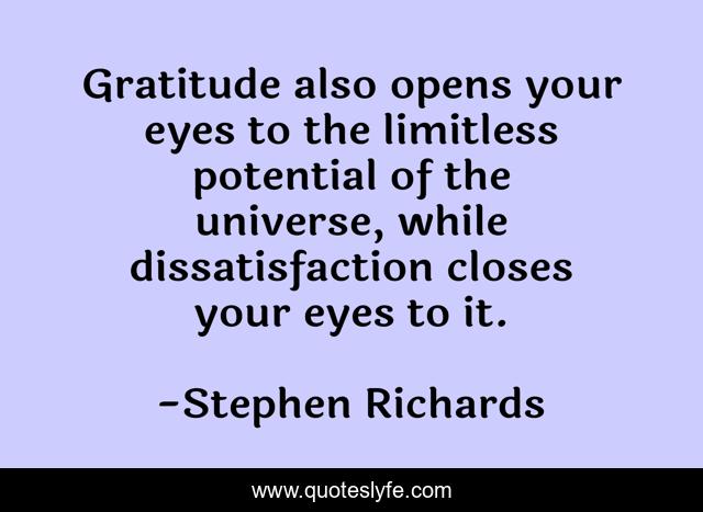 Gratitude also opens your eyes to the limitless potential of the universe, while dissatisfaction closes your eyes to it.