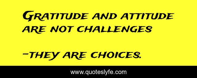 "they are choices. Quotes." Quoteslyfe.com, 2025. Fri. 05 Dec. 2025. <https://www.quoteslyfe.com/quote/Gratitude-and-attitude-are-not-challenges-179863>.