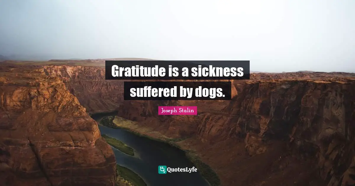 This page presents the quote "Gratitude is a sickness suffered by dogs.". Author of this quote is Joseph Stalin. This quote is about dog, sickness, inspirational christmas, gratitude,.