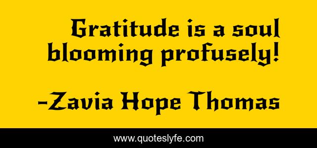 "Zavia Hope Thomas Quotes." Quoteslyfe.com, 2025. Sat. 06 Dec. 2025. <https://www.quoteslyfe.com/quote/Gratitude-is-a-soul-blooming-profusely-63848>.