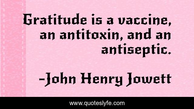 This page presents the quote "Gratitude is a vaccine, an antitoxin, and an antiseptic.". Author of this quote is John Henry Jowett. This quote is about gratitude, health,.
