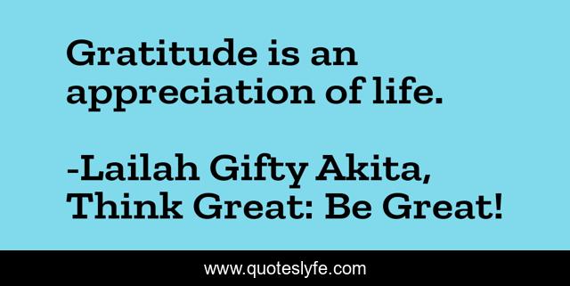 "Lailah Gifty Akita, Think Great: Be Great! Quotes." Quoteslyfe.com, 2025. Tue. 09 Dec. 2025. <https://www.quoteslyfe.com/quote/Gratitude-is-an-appreciation-of-life-124107>.