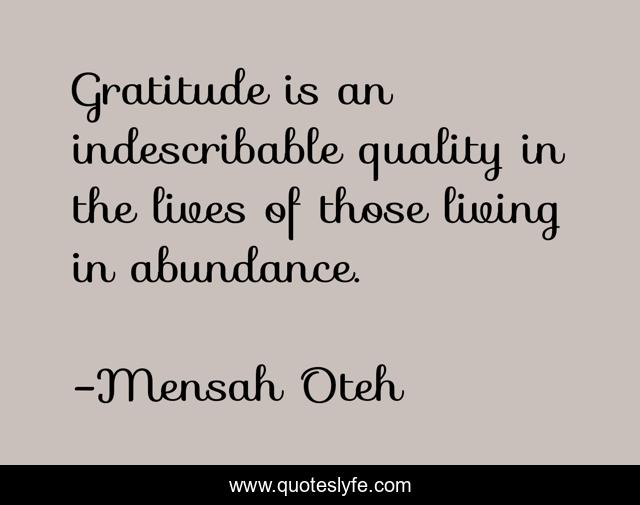 "Mensah Oteh Quotes." Quoteslyfe.com, 2025. Fri. 05 Dec. 2025. <https://www.quoteslyfe.com/quote/Gratitude-is-an-indescribable-quality-in-the-49205>.