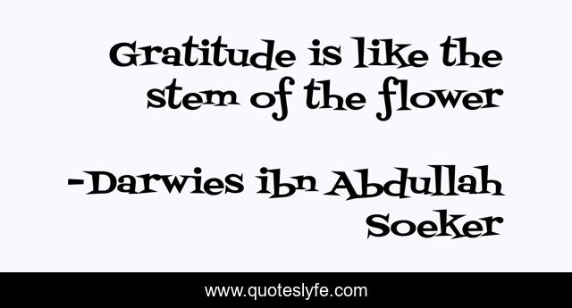 This page presents the quote "Gratitude is like the stem of the flower". Author of this quote is Darwies ibn Abdullah Soeker. This quote is about enthusiasm, humanity, inspirational, humility,.