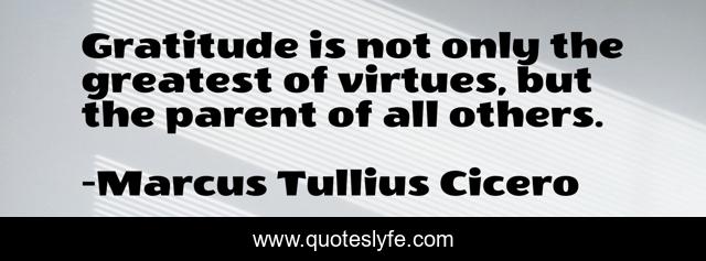 This page presents the quote "Gratitude is not only the greatest of virtues, but the parent of all others.". Author of this quote is Marcus Tullius Cicero. .