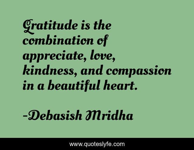 This page presents the quote "Gratitude is the combination of appreciate, love, kindness, and compassion in a beautiful heart.". Author of this quote is Debasish Mridha. This quote is about life, love, knowledge, inspirational, intelligence, philosophy, wisdom, quotes, affection,.