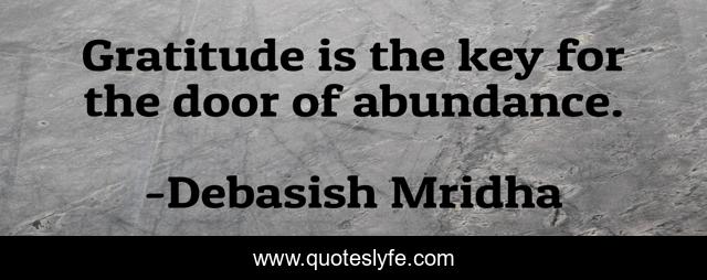 This page presents the quote "Gratitude is the key for the door of abundance.". Author of this quote is Debasish Mridha. This quote is about abundance, gratitude, debasish, mridha, philosophy, debasish-mridha, inspirational, enthusiasm,.