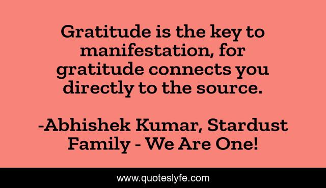 "Abhishek Kumar, Stardust Family - We Are One! Quotes." Quoteslyfe.com, 2025. Mon. 08 Dec. 2025. <https://www.quoteslyfe.com/quote/Gratitude-is-the-key-to-manifestation-for-180298>.