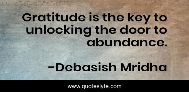 This page presents the quote "Gratitude is the key to unlocking the door to abundance.". Author of this quote is Debasish Mridha. This quote is about life, love, knowledge, inspirational, intelligence, philosophy, wisdom, quotes, affection,.