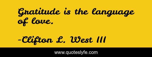 "Clifton L. West III Quotes." Quoteslyfe.com, 2025. Fri. 05 Dec. 2025. <https://www.quoteslyfe.com/quote/Gratitude-is-the-language-of-love-180157>.