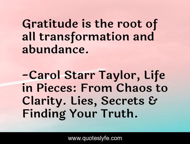 "Carol Starr Taylor, Life in Pieces: From Chaos to Clarity. Lies, Secrets & Finding Your Truth. Quotes." Quoteslyfe.com, 2025. Fri. 05 Dec. 2025. <https://www.quoteslyfe.com/quote/Gratitude-is-the-root-of-all-transformation-23133>.