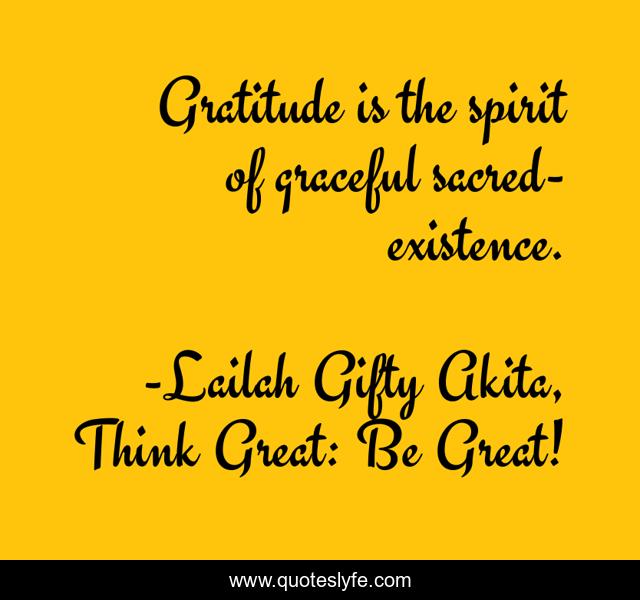 "Lailah Gifty Akita, Think Great: Be Great! Quotes." Quoteslyfe.com, 2025. Mon. 08 Dec. 2025. <https://www.quoteslyfe.com/quote/Gratitude-is-the-spirit-of-graceful-sacred-62560>.