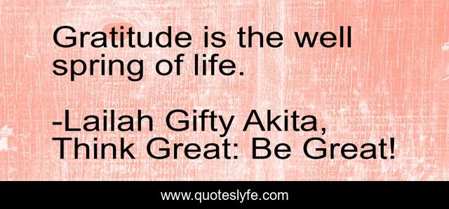 "Lailah Gifty Akita, Think Great: Be Great! Quotes." Quoteslyfe.com, 2025. Mon. 08 Dec. 2025. <https://www.quoteslyfe.com/quote/Gratitude-is-the-well-spring-of-life-97306>.