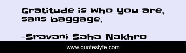 This page presents the quote "Gratitude is who you are, sans baggage.". Author of this quote is Sravani Saha Nakhro. .