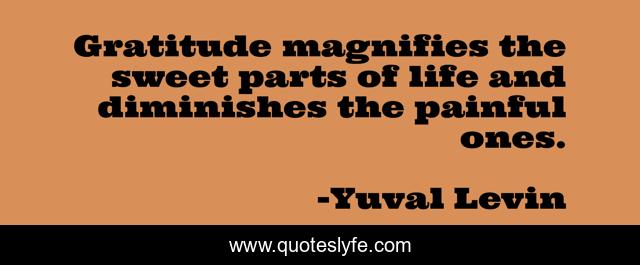 This page presents the quote "Gratitude magnifies the sweet parts of life and diminishes the painful ones.". Author of this quote is Yuval Levin. This quote is about gratitude, thankfulness, perspective,.