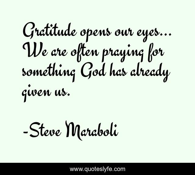 This page presents the quote "Gratitude opens our eyes… We are often praying for something God has already given us.". Author of this quote is Steve Maraboli. This quote is about gratitude, god, grateful, inspiration,.