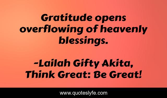 "Lailah Gifty Akita, Think Great: Be Great! Quotes." Quoteslyfe.com, 2025. Fri. 05 Dec. 2025. <https://www.quoteslyfe.com/quote/Gratitude-opens-overflowing-of-heavenly-blessings-78400>.