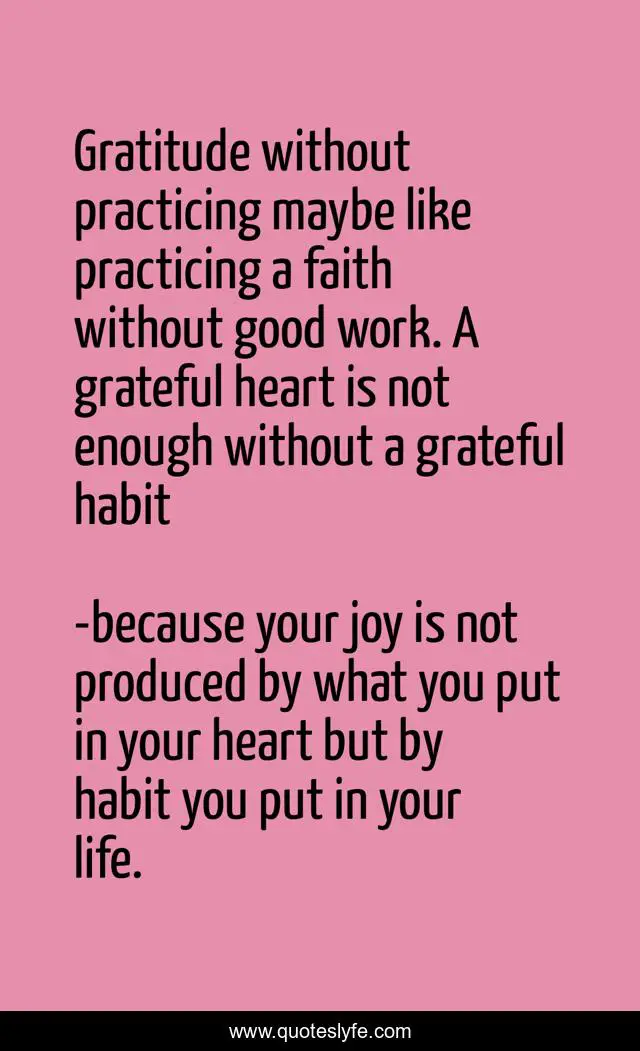 "because your joy is not produced by what you put in your heart but by habit you put in your life. Quotes." Quoteslyfe.com, 2025. Fri. 05 Dec. 2025. <https://www.quoteslyfe.com/quote/Gratitude-without-practicing-maybe-like-practicing-a-20599>.