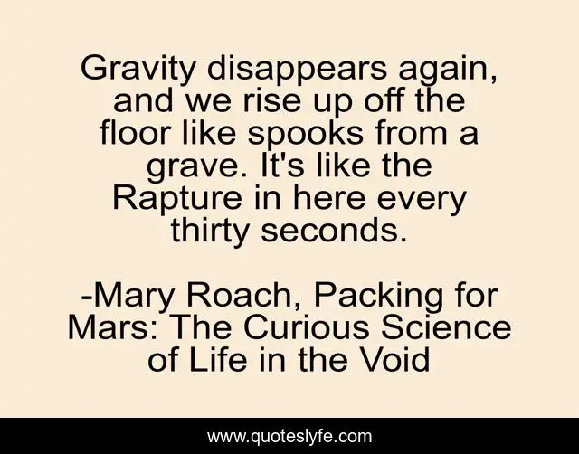 "Mary Roach, Packing for Mars: The Curious Science of Life in the Void Quotes." Quoteslyfe.com, 2025. Sun. 07 Dec. 2025. <https://www.quoteslyfe.com/quote/Gravity-disappears-again-and-we-rise-up-42002>.