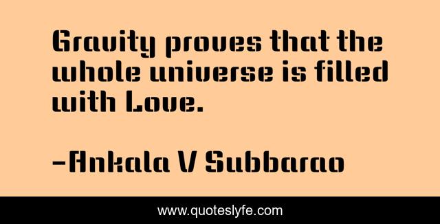 This page presents the quote "Gravity proves that the whole universe is filled with Love.". Author of this quote is Ankala V Subbarao. This quote is about universe, love, gravity, affection, proof,.