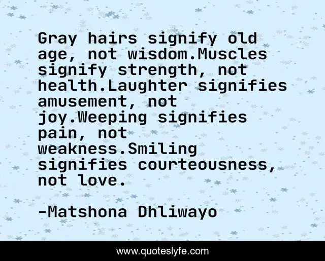 "Matshona Dhliwayo Quotes." Quoteslyfe.com, 2025. Fri. 05 Dec. 2025. <https://www.quoteslyfe.com/quote/Gray-hairs-signify-old-age-not-wisdom-98526>.