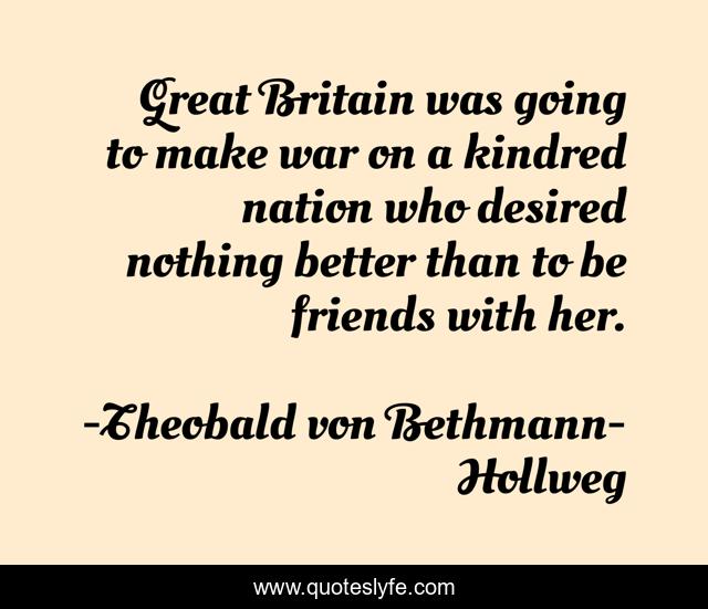 This page presents the quote "Great Britain was going to make war on a kindred nation who desired nothing better than to be friends with her.". Author of this quote is Theobald von Bethmann-Hollweg. .
