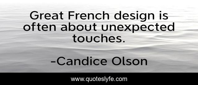 This page presents the quote "Great French design is often about unexpected touches.". Author of this quote is Candice Olson. This quote is about great, unexpected,.