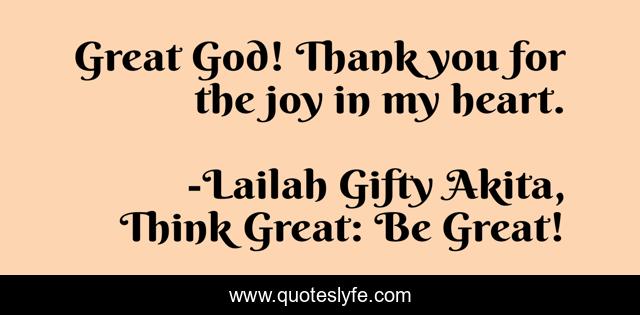 "Lailah Gifty Akita, Think Great: Be Great! Quotes." Quoteslyfe.com, 2025. Mon. 08 Dec. 2025. <https://www.quoteslyfe.com/quote/Great-God-Thank-you-for-the-joy-85074>.