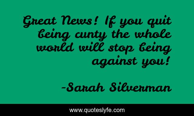 "Sarah Silverman Quotes." Quoteslyfe.com, 2025. Sat. 06 Dec. 2025. <https://www.quoteslyfe.com/quote/Great-News-If-you-quit-being-cunty-146962>.
