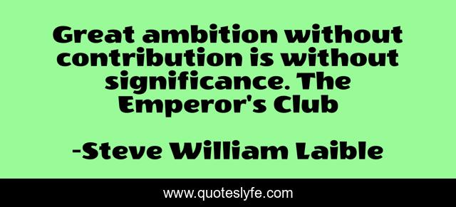 This page presents the quote "Great ambition without contribution is without significance. The Emperor's Club". Author of this quote is Steve William Laible. This quote is about enthusiasm, life-and-living, inspirational, life-lessons,.