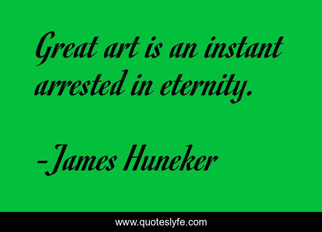 This page presents the quote "Great art is an instant arrested in eternity.". Author of this quote is James Huneker. This quote is about eternity, great, great art,.