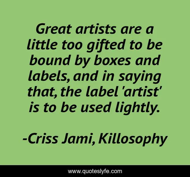 "Criss Jami, Killosophy Quotes." Quoteslyfe.com, 2025. Mon. 08 Dec. 2025. <https://www.quoteslyfe.com/quote/Great-artists-are-a-little-too-gifted-179210>.