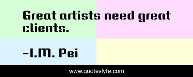 "I.M. Pei Quotes." Quoteslyfe.com, 2025. Mon. 08 Dec. 2025. <https://www.quoteslyfe.com/quote/Great-artists-need-great-clients-66255>.
