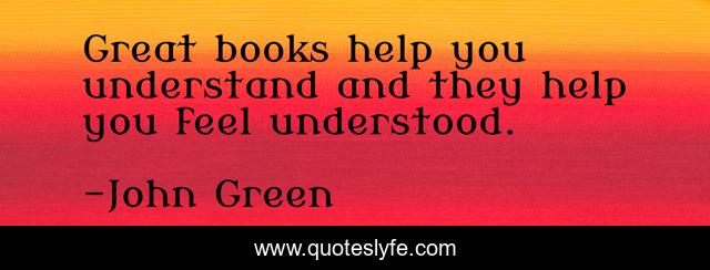 This page presents the quote "Great books help you understand and they help you feel understood.". Author of this quote is John Green. This quote is about books, reading,.