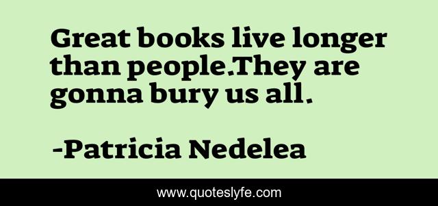 "Patricia Nedelea Quotes." Quoteslyfe.com, 2025. Sat. 06 Dec. 2025. <https://www.quoteslyfe.com/quote/Great-books-live-longer-than-people-They-115759>.