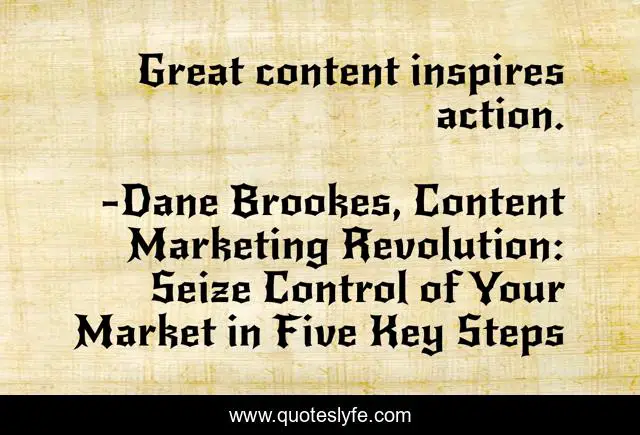 "Dane Brookes, Content Marketing Revolution: Seize Control of Your Market in Five Key Steps Quotes." Quoteslyfe.com, 2025. Mon. 08 Dec. 2025. <https://www.quoteslyfe.com/quote/Great-content-inspires-action-235621>.