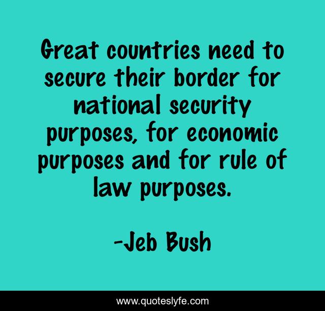 This page presents the quote "Great countries need to secure their border for national security purposes, for economic purposes and for rule of law purposes.". Author of this quote is Jeb Bush. This quote is about security, law, economic,.