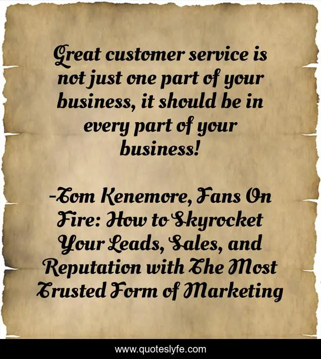 "Tom Kenemore, Fans On Fire: How to Skyrocket Your Leads, Sales, and Reputation with The Most Trusted Form of Marketing Quotes." Quoteslyfe.com, 2025. Sun. 07 Dec. 2025. <https://www.quoteslyfe.com/quote/Great-customer-service-is-not-just-one-128400>.