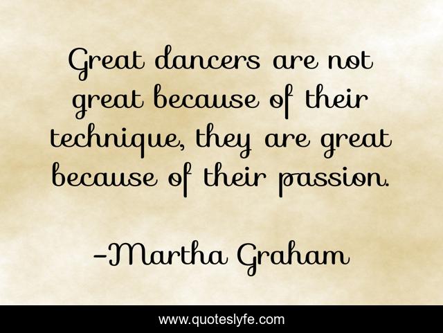 This page presents the quote "Great dancers are not great because of their technique, they are great because of their passion.". Author of this quote is Martha Graham. .
