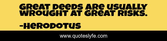 This page presents the quote "Great deeds are usually wrought at great risks.". Author of this quote is Herodotus. .