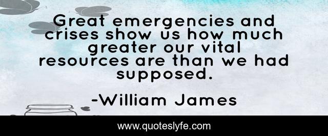 This page presents the quote "Great emergencies and crises show us how much greater our vital resources are than we had supposed.". Author of this quote is William James. .