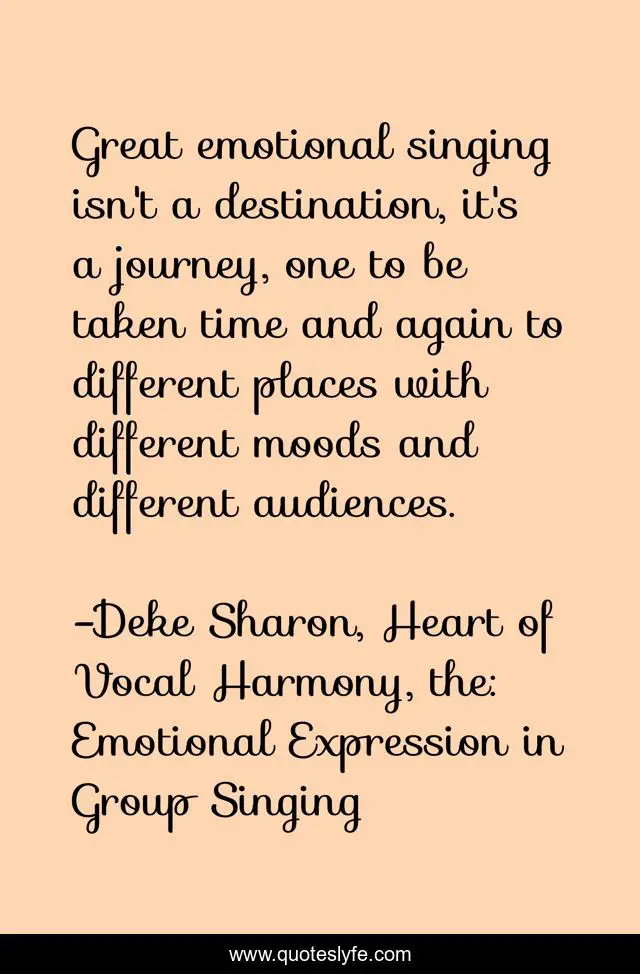 "Deke Sharon, Heart of Vocal Harmony, the: Emotional Expression in Group Singing Quotes." Quoteslyfe.com, 2025. Fri. 05 Dec. 2025. <https://www.quoteslyfe.com/quote/Great-emotional-singing-isn-t-a-destination-80840>.