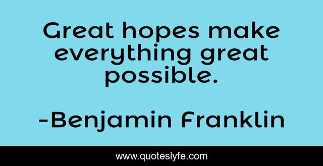 "Benjamin Franklin Quotes." Quoteslyfe.com, 2025. Mon. 08 Dec. 2025. <https://www.quoteslyfe.com/quote/Great-hopes-make-everything-great-possible-36944>.