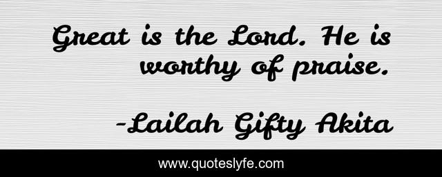 This page presents the quote "Great is the Lord. He is worthy of praise.". Author of this quote is Lailah Gifty Akita. This quote is about praise-habit, praise-to-god, praise, praise-and-worship,.