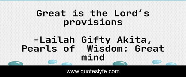 "Lailah Gifty Akita, Pearls of Wisdom: Great mind Quotes." Quoteslyfe.com, 2025. Mon. 08 Dec. 2025. <https://www.quoteslyfe.com/quote/Great-is-the-Lord-s-provisions-62468>.